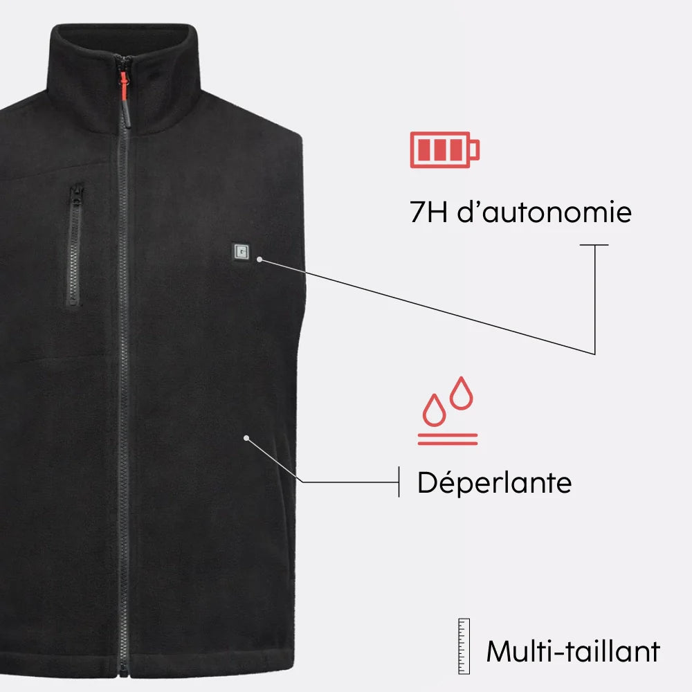 Sleeveless heated fleece with eco-designed battery